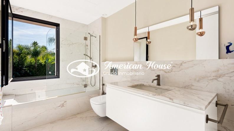 Elegante villa, reformada en estilo moderno utilizando materiales naturales de primera calidad y situada en una zona de playa a unos 200m de la misma y a 1km de Puerto Banús. La propiedad se encuentra en una parcela plana con un jardín muy cuidado, con piscina y una casa en el árbol. También hay un garaje para dos coches, almacenamiento para bicicletas y cosas de jardín en el terreno.